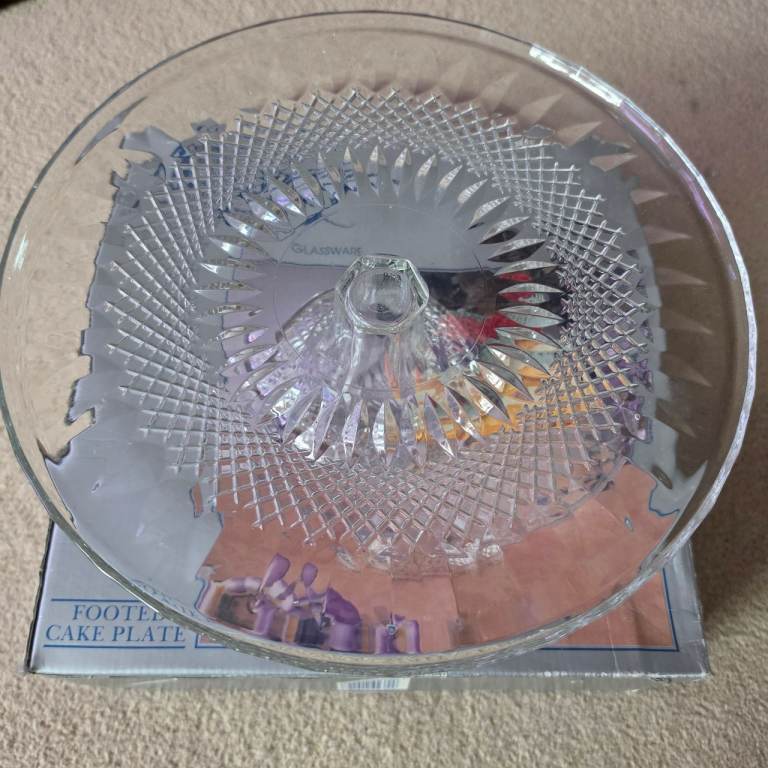 Footed cake stand. Glass. 31cm. Has previously been used. Comes with box. Cash on collection from IP6 0.