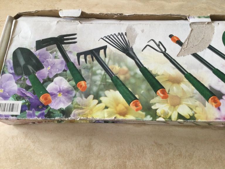 New 7 sets of garden tools one side box damaged been the garage 16 inches length collection please thank you 😊