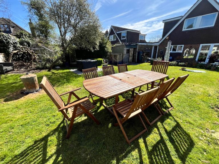 Table length without extension: 170 cm Table length with extension: 220 cm Table Height: 74cm Table Width: 100 cm Freshly cleaned and oiled