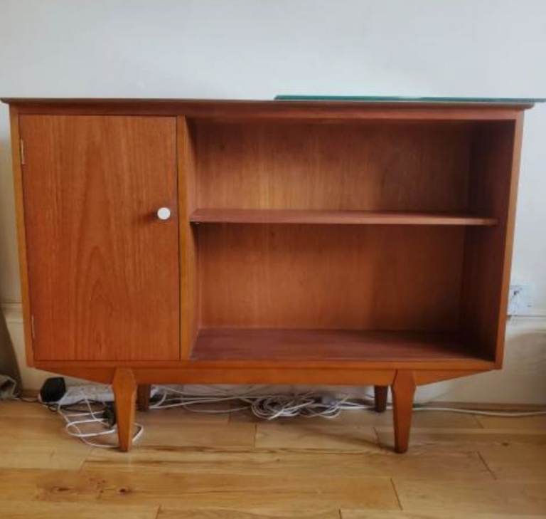 Mid century cabinet for sale Vinatge/Antique Wooden veneer Good condition Collectable one of a kind item Comes with optional two glass sliding doors, but will need to be slotted in manually, I took them out for transport Pick up glasgow kinning par