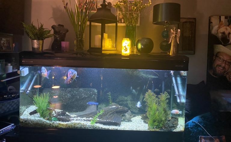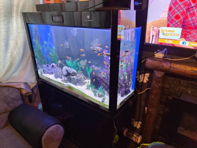 We are closing down are big fish tank, as we no longer have time with 3 little kids running around. The tank comes with everything you can see apart from the fish. It currently has coral sand on the bottom. All the stones included aswell (£156 wo