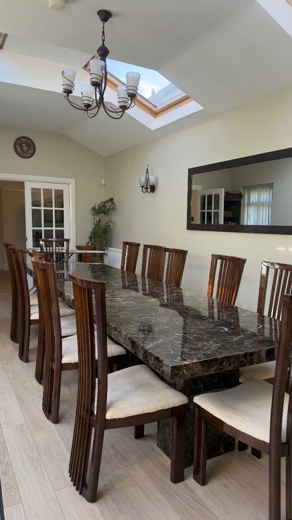 Beautiful Marble 6/12 Seater Dining Table plus chairs and console table