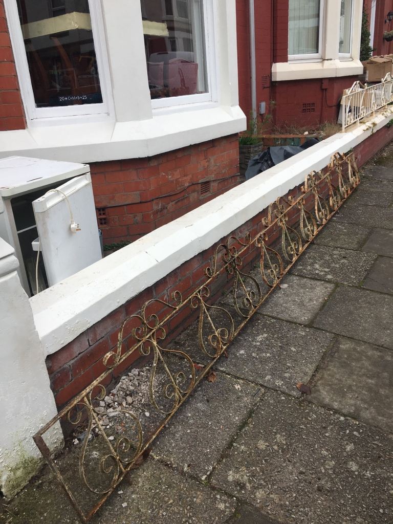 Wrought Iron Railing to fit top of front wall of a house. Very heavy. Needs wire brushing and painting. Will look really good when finished. Buyer to collect.