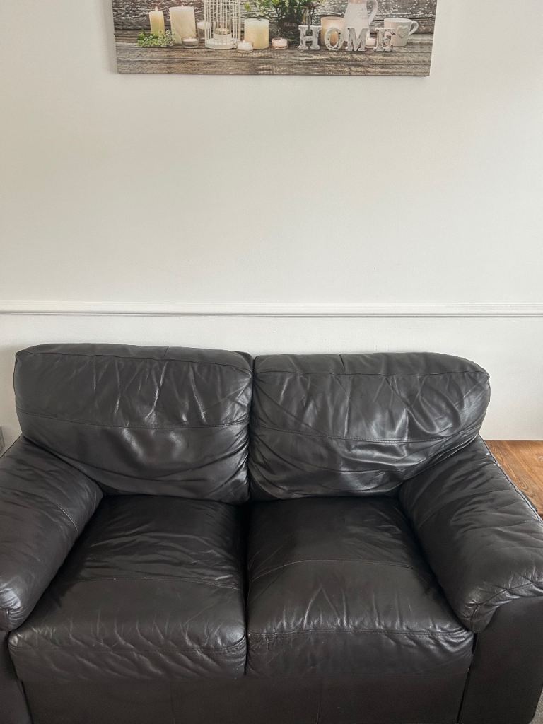 1 x leather two seater sofas. Collection from Llantwit Major immediately as having new sofa delivered 30th March.