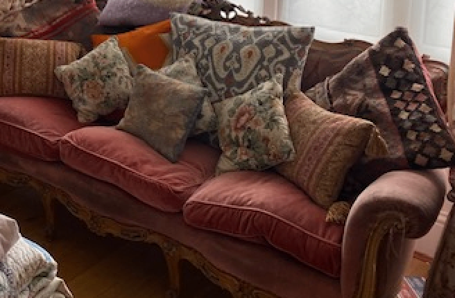 Hello, I bought this vintage sofa years ago but now need to give away to a new home. It is a very solid piece with (walnut?) carvings right round. some rips in fabric and clearly a well-used piece so for a a shabby chic or boho look. On the practica