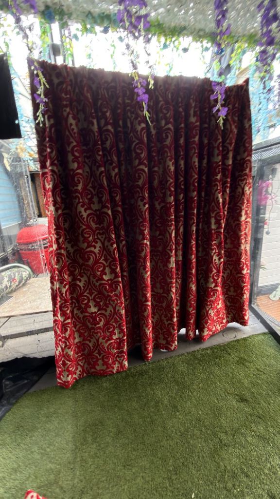 LUXURY VELVET BLACKOUT CURTAINS – 5⭐ HOTEL – HEAVY QUALITY – FREE DELIVERY Stunning luxury velvet curtains from a 5-star hotel – premium, heavy-quality curtains you won’t find in standard high street shops. ✨ Rich red & gold damask design – elegant