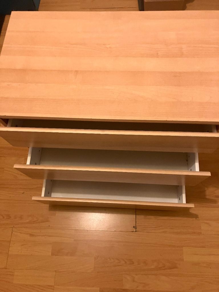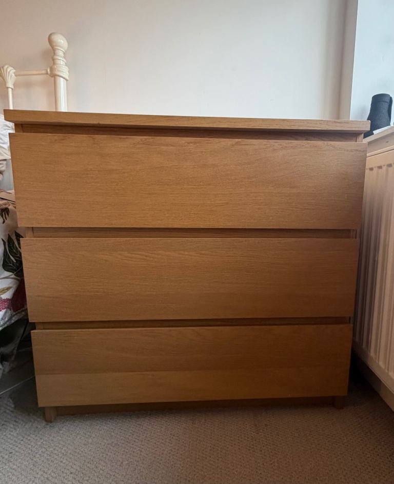 Chest of 3 drawers, oak veneer, 80x78 cm used in good condition, some light signs of wear. From smoke & pet free home. Collection only. Second floor flat no lift.