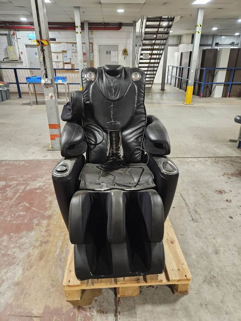 Sasaki Massage Chair – Model 5 Series (SK5100427015) Fully functional Sasaki massage chair with head massage feature and original remote control included. All massage functions work as they should. The leather upholstery is worn and would benef