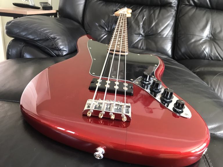 Squier Vintage Modified Jaguar Bass Special HB in Trans Red I’d like to draw your attention to the gouge in the back of the bass - this is noticeable only if you turn the bass around and not noticeable when someone is playing. There is also a hair