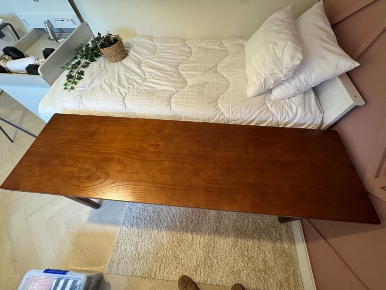 High-quality solid wood writing desk in walnut finish, originally purchased for £525 in Litfad. Model: Modern Style Curved Office Desk Size: 71"L x 20"W x 30"H Material: Solid wood Colour: Walnut This desk features a clean, modern desi