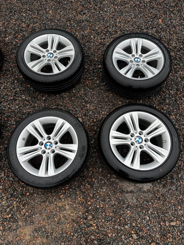 Set of 4 genuine BMW 16” alloy wheels fitted with tyres 205/55 R16. All wheels are straight, with no cracks or welds. They do have cosmetic marks/scuffs from normal use (see photos), but nothing structural. Tyres have usable tread remaining an