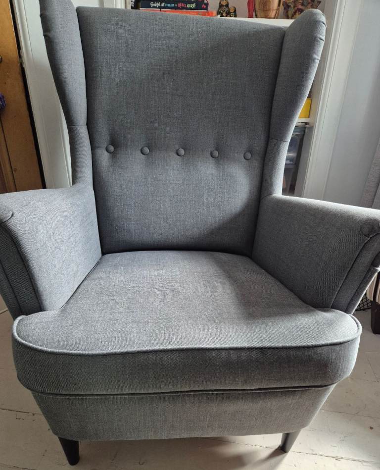 Grey chair. A couple of stains on seat cushion as seen in photos but otherwise clean & well looked after. Collection only. Cash on collection please - £60 ono From a smoke free home