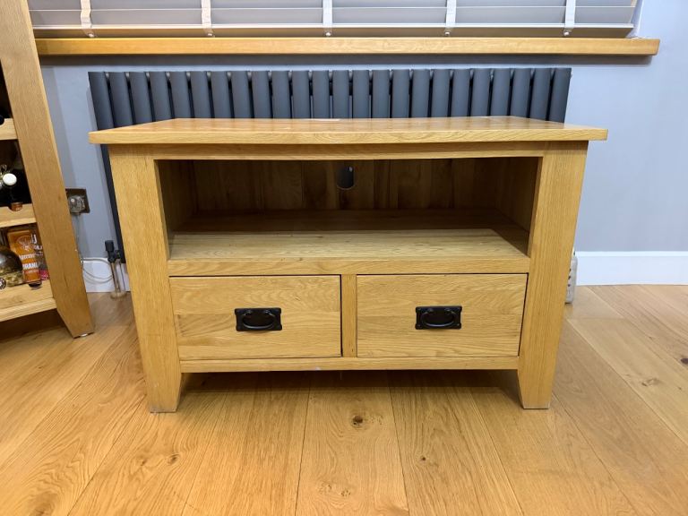 Oak Tv Unit with two drawers Very good condition Pick up only W 93 cm D 50 cm H 60 cm
