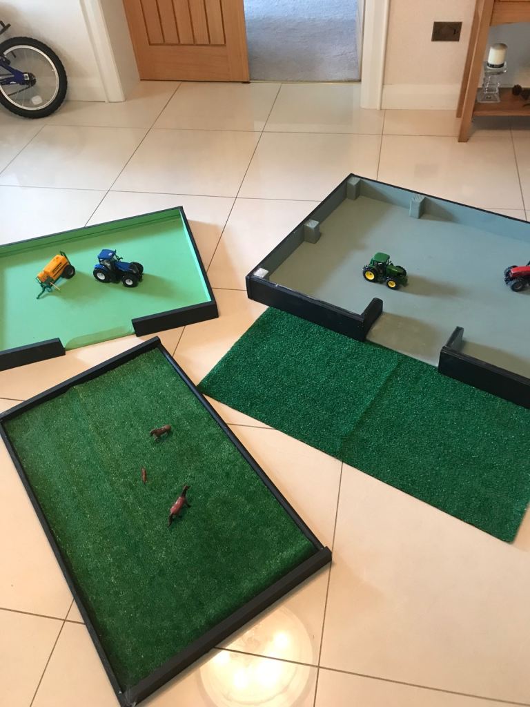 For sale - we have a selection of home Built toy farm yards available. Some made with retaining farm yard walls & entrance ramps. Some can be used as fields for farming activities. All are well made, painted & child friendly. Can be placed on flo