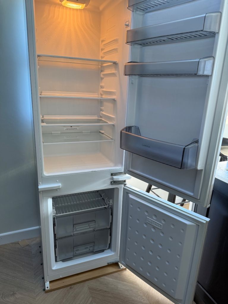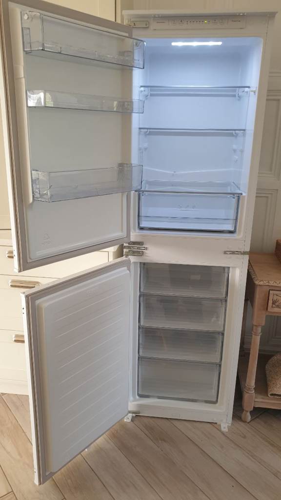 Kenwood integrated fridge freezer 50/50. Good condition. 177.2 x 54 x 54 cm (H x W x D) Selling due to adding full sized larder fridge and freezer. Currently £400 in Currys Bargain at £130 If ad is up it is still available.