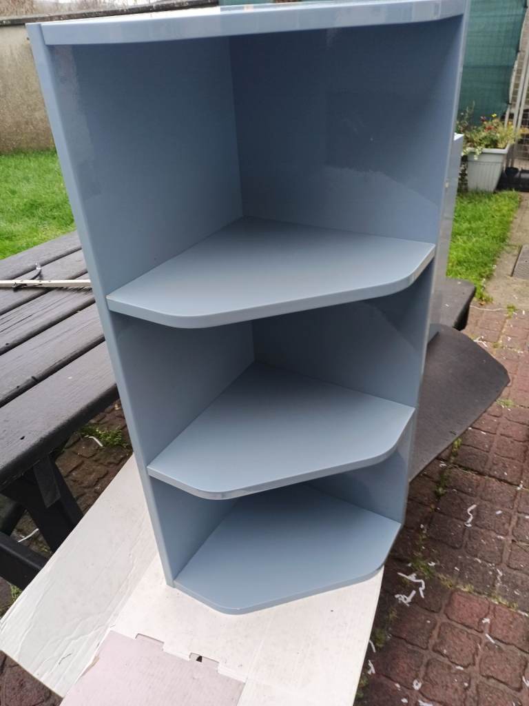Bathroom cabinet and shelving unit. Second hand a few minor marks but overall good condition. MDF high gloss finish in blue. See pictures for dimensions. Can deliver locally newry area. Same as other ads