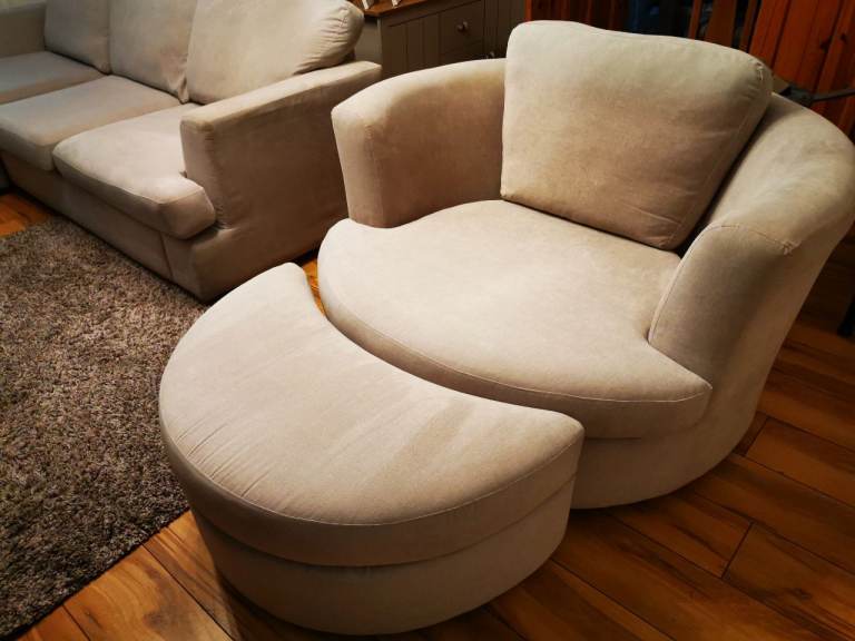 Light coloured 4 seater Sofa and 360° Swivel Love Seat with Foot Stool.