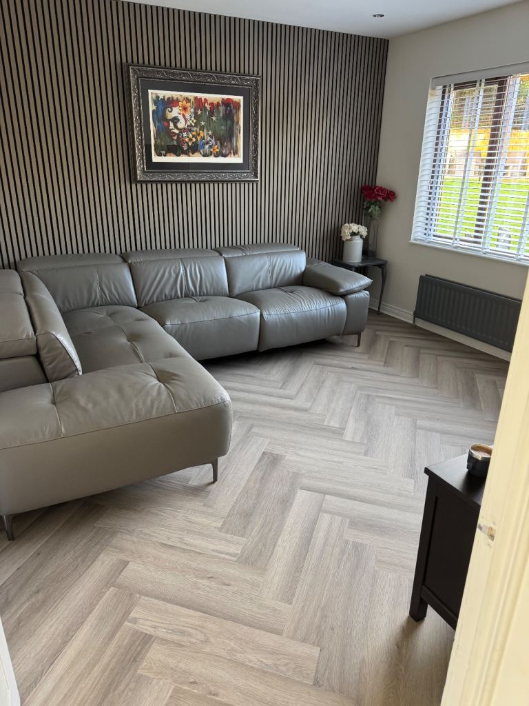 Liberty Floors Luxury Vinyl Tile Flooring (LVT) Herringbone effect Alabama grey uniclic Coupling. Three boxes available each box covers approximately 2.22m squared so 6.66m squared for all three. Surplus to a recent project but can’t return. Boxes ar