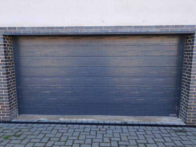 Good quality Hormann sectional double garage door in anthracite grey. 6 years old and in very good working order with electrical remote mechanism. Quality German engineering. Available from mid/late April. Collection only from West Bridgford. The doo