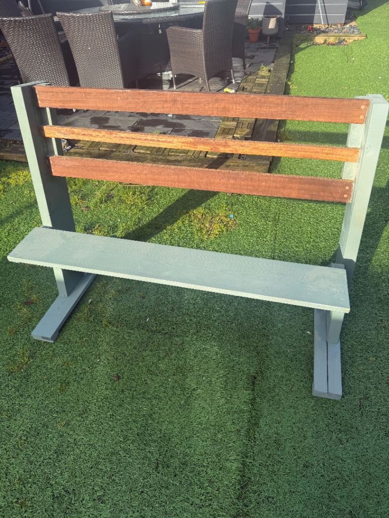 Outdoor 3 person bench in amazing condition Built as a project as I had some wood laying around, has weather resistant paint on it all around so will last a long time.