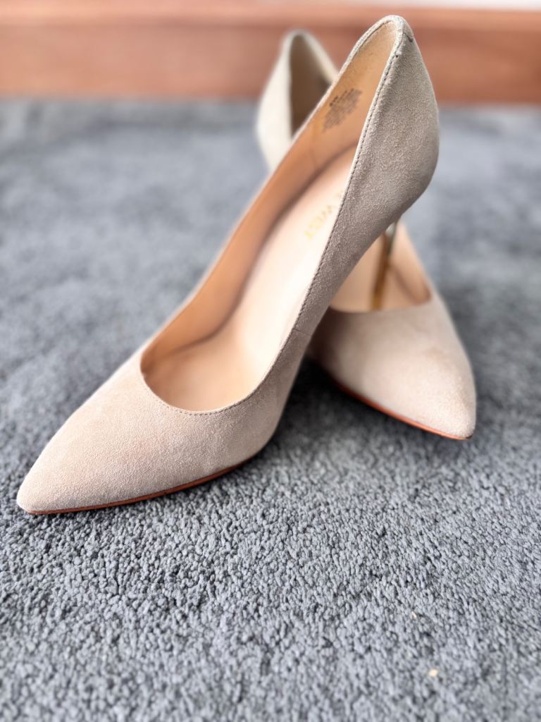 Beige/cream suede court shoes with gold stiletto heels - NINE WEST Size UK6 US8 Heel height 4 inches Very comfortable to wear with slightly padded insoles Worn for a wedding Excellent condition 💫