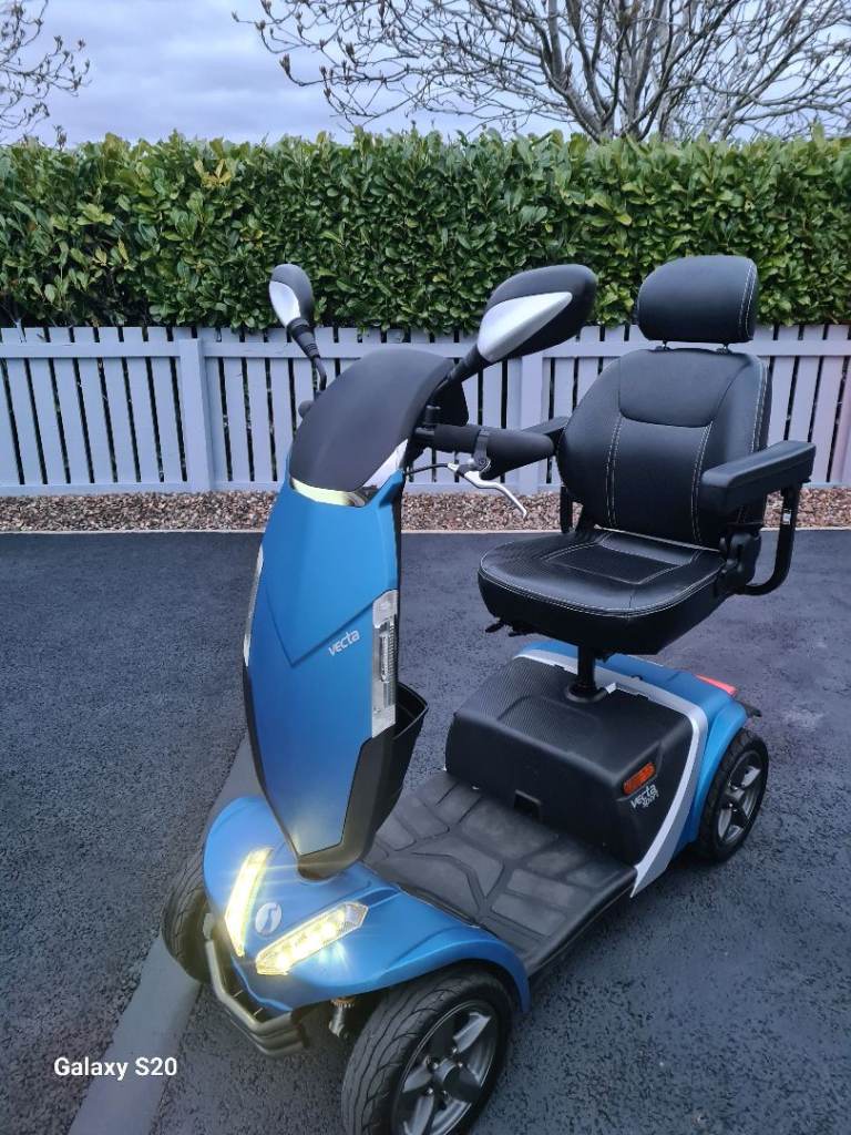 Green Electric mobility scooter hardly used, plastic covers still on lights etc Selling fot Mr A Anderson. Collected from door flolding Mobility scooter cover included.