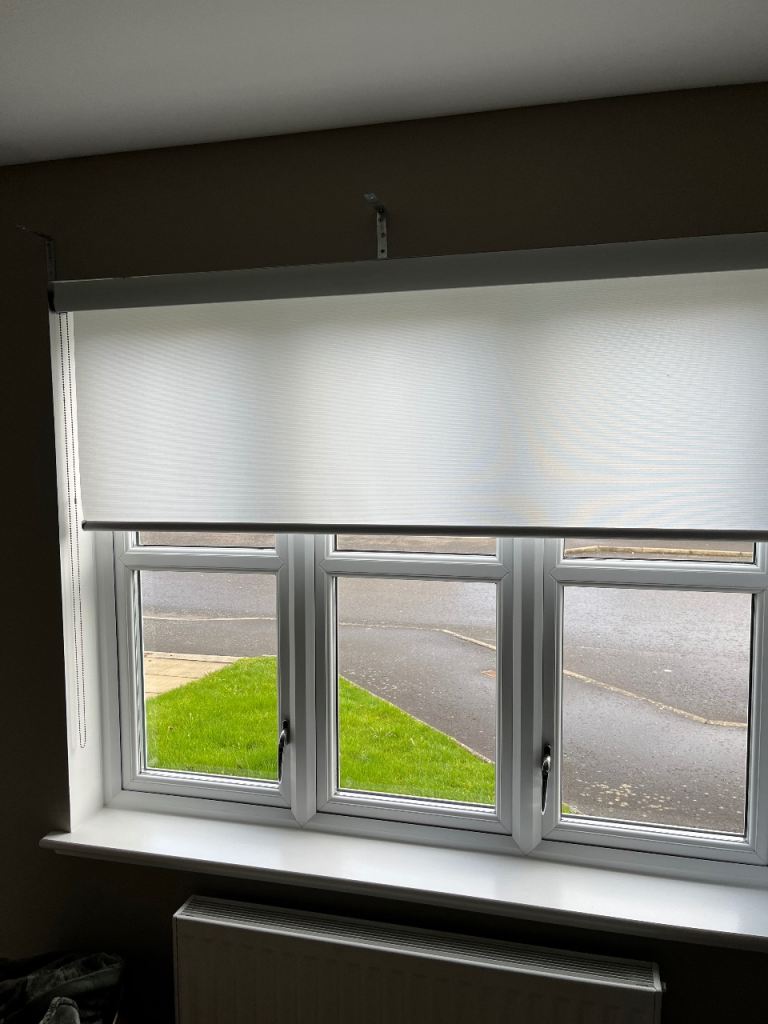 Roller Blind, beige colour In good clean working order Width 66cm Drop 170cm approx Buyer to collect