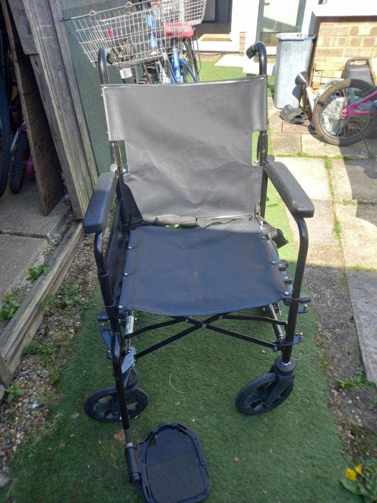 Days wheelchair Good condition, some damage to foam on handles but just cosmetic Folds up fairly compact and fits in the car boot easily Collection from Swallowfield