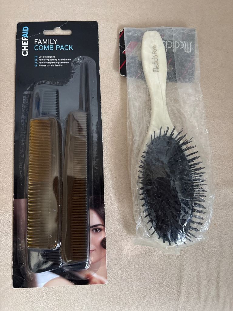 A new set of various combs including a styling comb and a brand new hair brush still in packaging. Both for £2