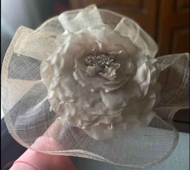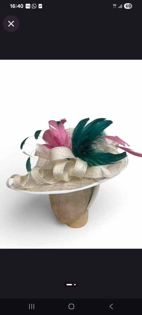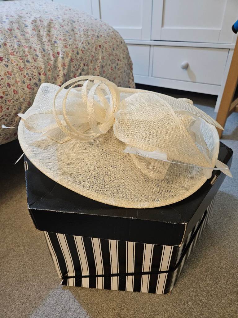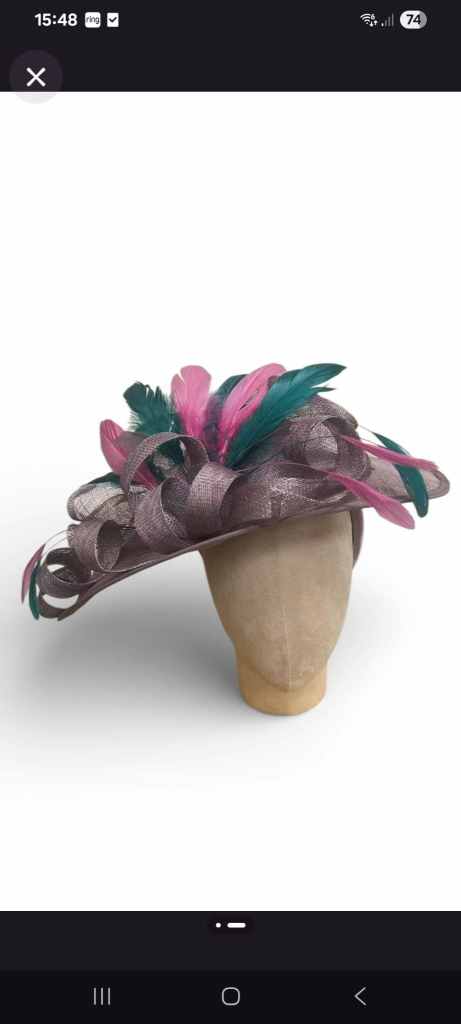 A brand new, Stunning Mother of the bride/groom hatinator. 50x40 cm, on a padded wide satin band for comfort, Bought for my son's wedding in February but never worn as I changed outfits last minute. £60 ono.