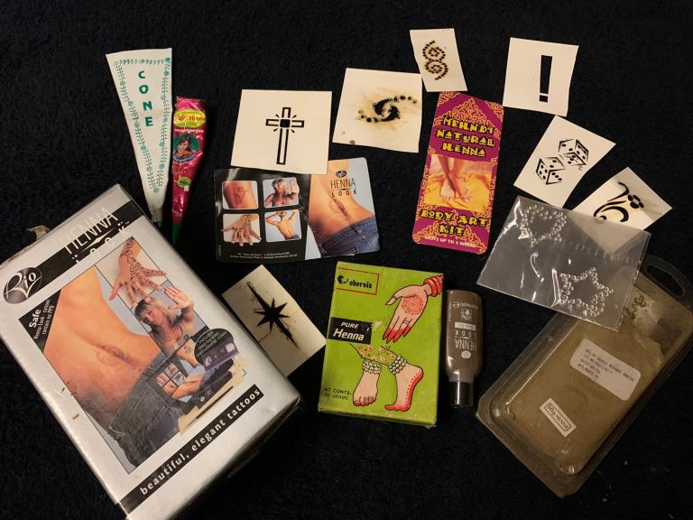 Henna tattoo kit with stencils and henna paste which can be mixed in a small bowl with water to have tattoos lasting for weeks.