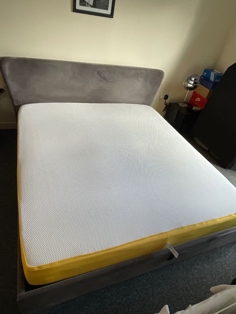 MUST GO THIS WEEK Next upholstered Super king bed frame with ottoman storage with the mattress. Grey velvet-look super king bed frame with huge storage underneath. All slats are in place and the mechanism moves the bed up and down smoothly. Boug