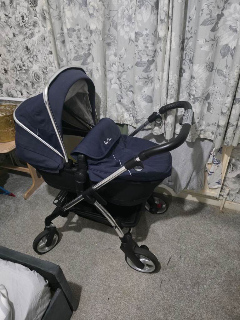 This is a Silver Cross pram/pushchair in a nice blue colour, ideal for your little one. It's in good condition with normal signs of use, fully functional and ready for a new home. Everything works as it should, making it a reliable choice for everyda