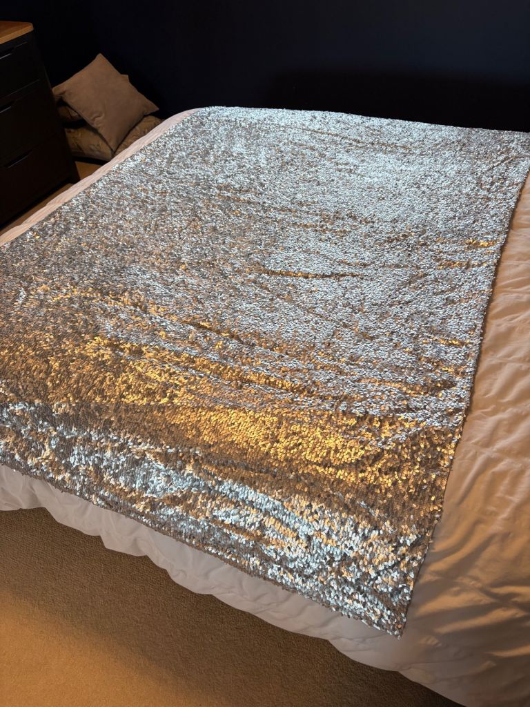 Stunning sequin & velvet throw from Voyage Maison. Displayed in the photos on a king size bed. Excellent condition. Smoke free home. Approx 200cm length Cash on collection from Kintore