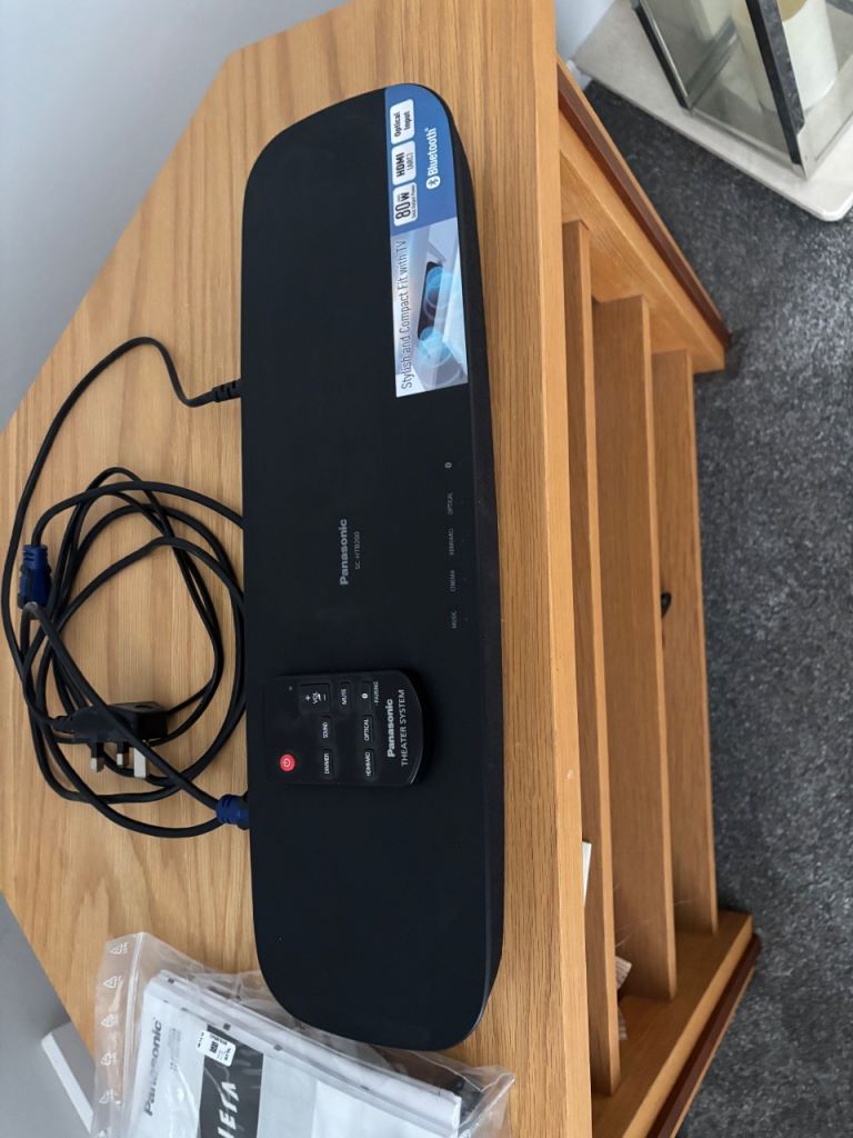 Panasonic sound bar with remote control and hdmi lead