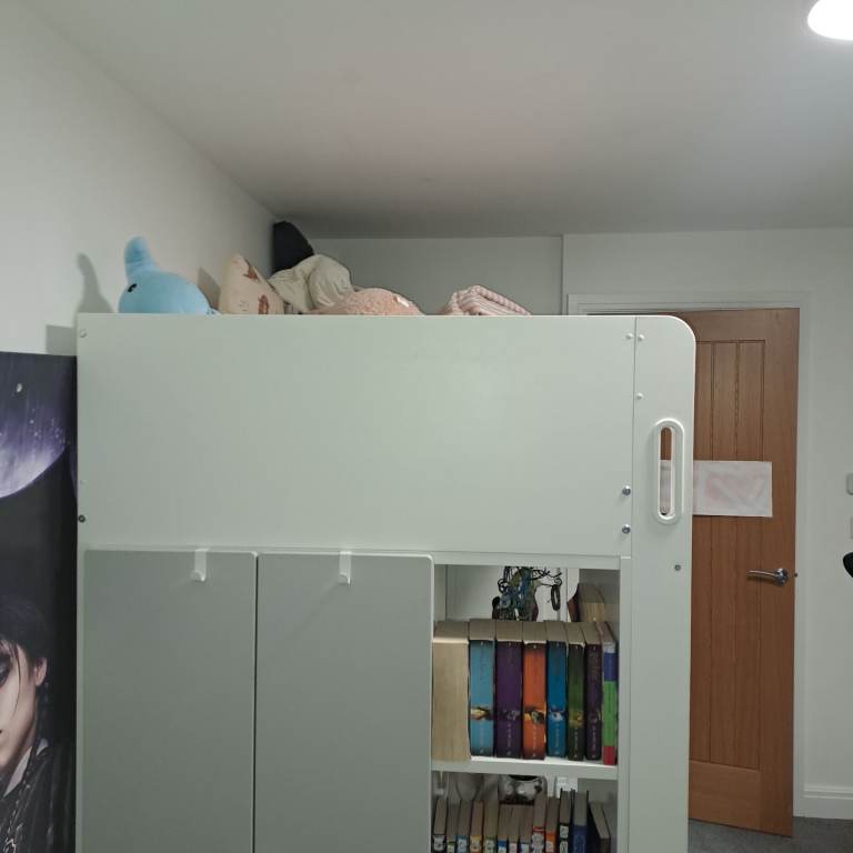 Loft bed in great condition the mirror in the photo is not included only had it for a year white white gray door and draws collection only
