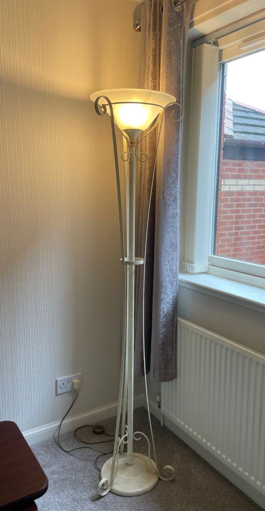 Standard Floor Lamp in cream painted metal finish with large glass shade. In lovely condition from smoke & pet free home. Collection only.