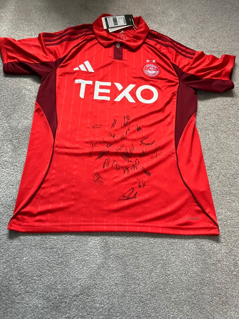 Signed by all players. Won at a raffle at pittodrie beginning November. T-shirt is size medium - retailing at £70. Selling for cheaper due to signatures not being the best visibility but can still make out who most players are.