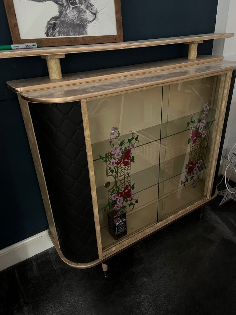 This carved antique small bar table is a personalised piece with intricate wood carvings, adding a touch of charm to any indoor space. Standing at 65cm in height and 40cm in width, this square-shaped table is perfect for serving drinks or displaying