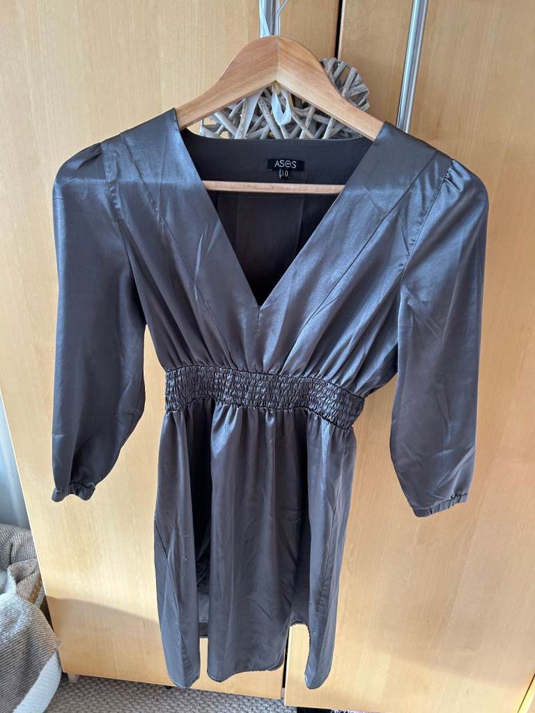 Ladies ASOS Dark Silver dress, size 10, good condition, long sleeve V neck and elasticated waist, can post, pet & smoke free