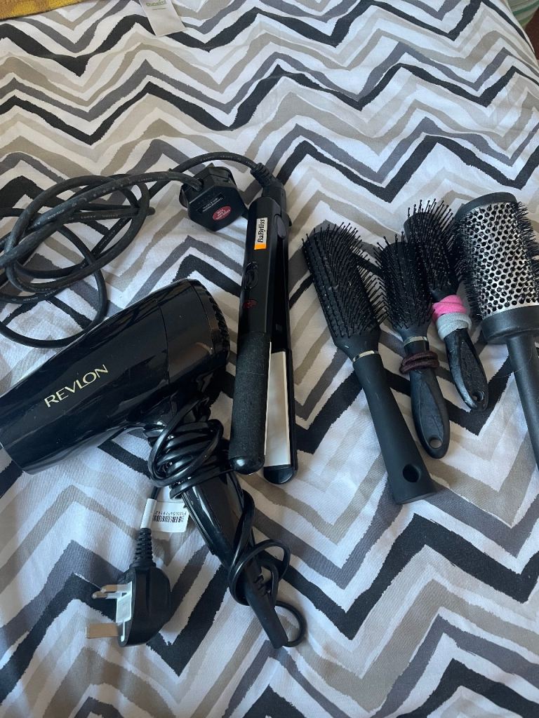 Babylis hairdryer, Simply straight hot brush , cheyi n straightners , babylis straightners grey. £5 EACH