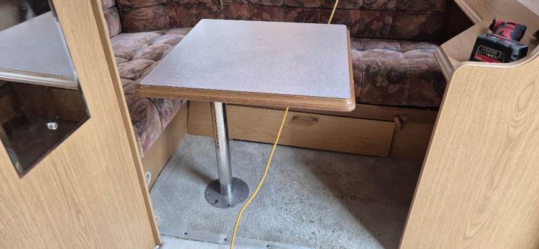 Table with leg in the floor mounted for caravan motorhome camper boat.