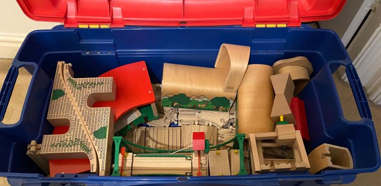 The collection has been stored away for over 20 years and continues to be in really good condition. I don’t know how many track pieces there are exactly but as can be seen in the images there are a lot and this includes regular pieces as well as brid