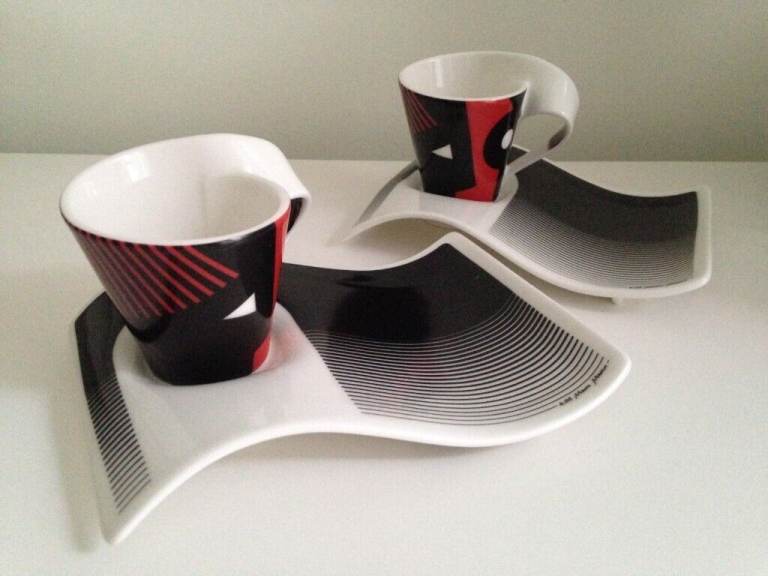 2 X Villeroy and Boch, New Wave Caffe ‘Faces Mocha espresso cup and saucer, NEW.Collectable item from 2005, a first Coloured New Wave Series draft Marc Manu artist! Fine China Villeroy Boch & Original Espresso Cup 0.08l content, plate approx. 17 x