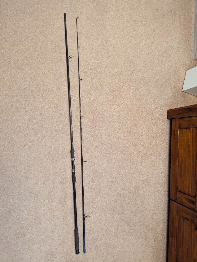 Hollow-glass rod with lined rings. Sound condition but with a few scuffs - nice cork handle! Suit beginner learning coarse fishing techniques. Bargain - hence buyer to collect.