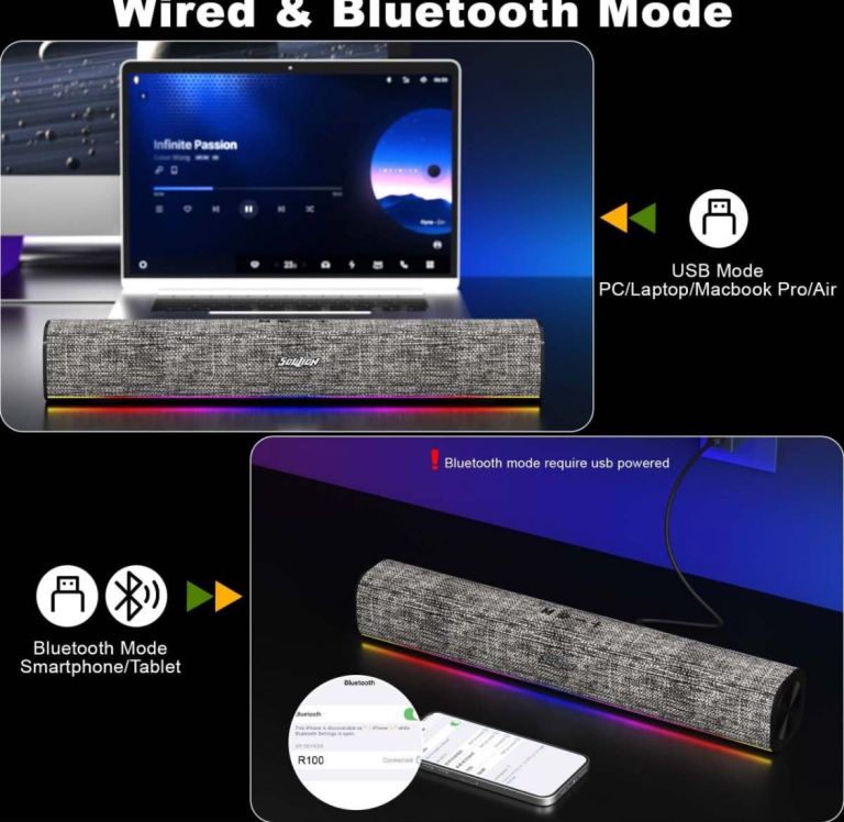 SOULION R40 Computer Speakers, 2.0 USB Powered PC Speakers, Desktop Gaming Speaker with Volume Control Button, Bluetooth 5.3, Surround Sound Speaker for Laptop,Tablets,Music Player