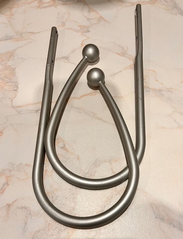 Pair of Ikea curtain tie backs - metal, silver. Used and a bit scuffed but life left in them. Collection from whitefield Manchester M45. Other items available if interested.