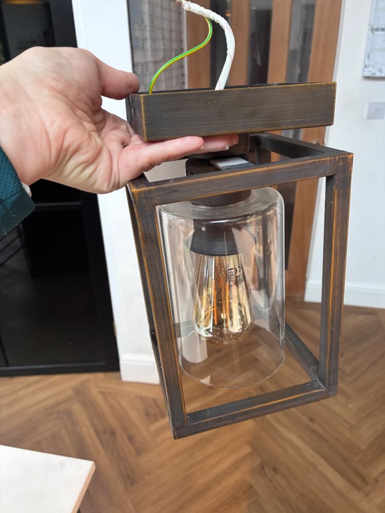Lovely industrial style ceiling light fitting in a rustic dark metal finish. Comes with an Edison-style filament bulb and clear glass cylinder shade, giving a warm glow. Includes all necessary mounting hardware and electrical connectors, ready for in
