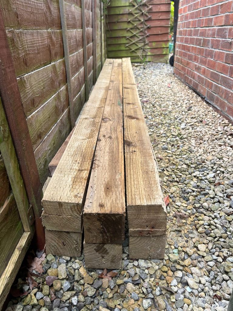 New Treated Fencing timber 8 foot fence post 4x4 £12 10 foot fence post £17 3.6m fence rail £6.50 6 foot 150mm wide slat £2.40 6 foot 100mm slat £1.65 Premium blue circle Postcrete fast set £7.50 All other sizes available 3ft, 4ft, 5