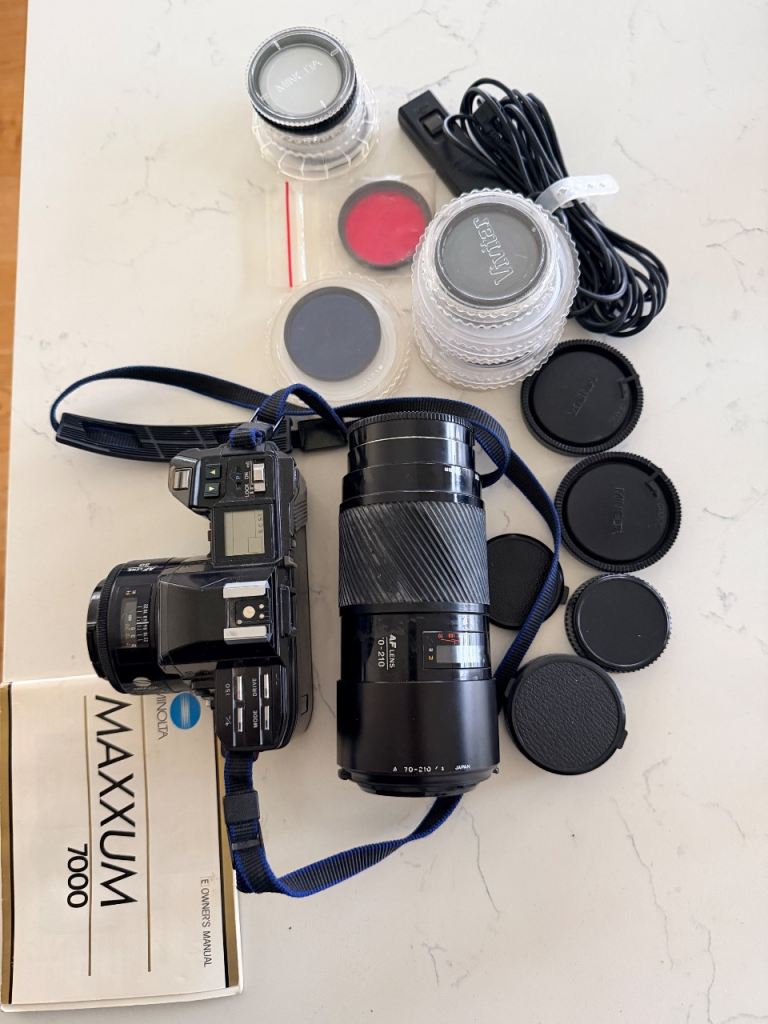Minolta Maxxum 7000 35mm film camera plus lenses and filters